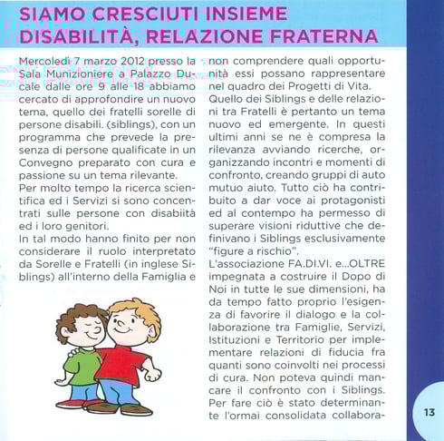 L’associazione FA.DI.VI. e...OLTRE impegnata a costruire il Dopo di Noi in tutte le sue dimensioni, ha da tempo fatto proprio l’esigenza di favorire il dialogo e la collaborazione tra Famiglie, Servizi, Istituzioni e Territorio per implementare relazioni di fiducia fra quanti sono coinvolti nei processi di cura.