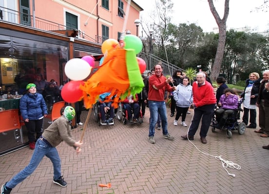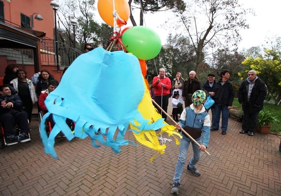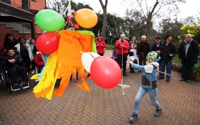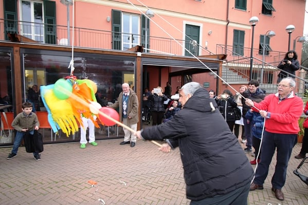 Festa di Pentolaccia il 21 febbraio al Centro di Viale Teano, trascorsa con gioia da persone di ogni età, che