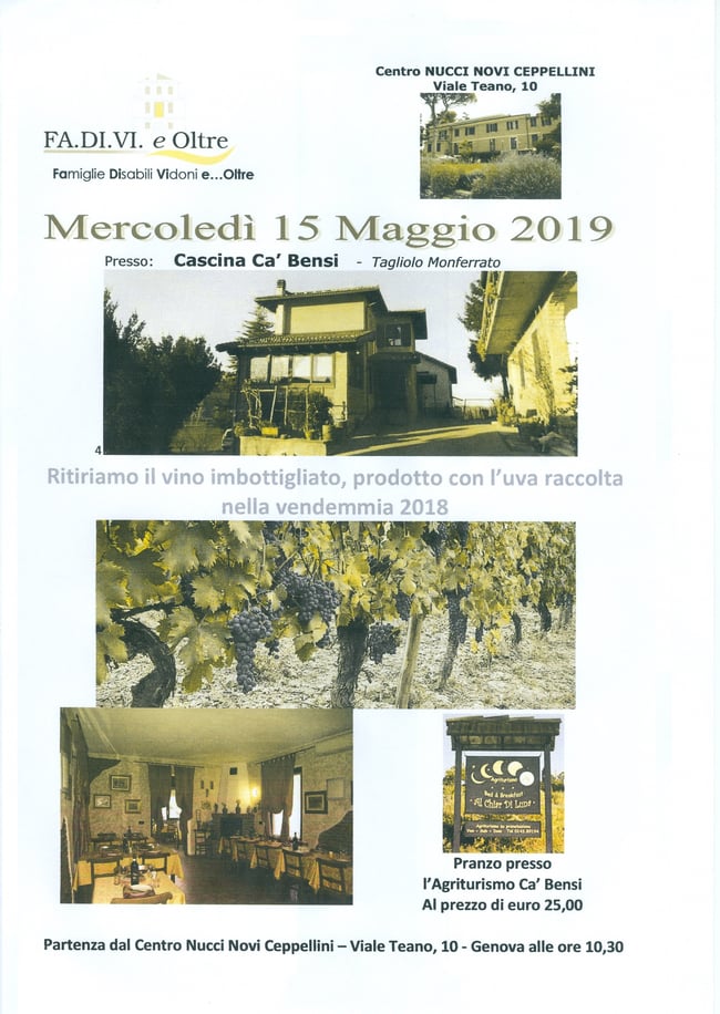 Siamo tornati a Tagliolo per prendere il vino di Cà Bensi. Dopo aver raccolto l'uva, e messo il mosto a riposare, è venuto il tempo di prendere le nostre bottiglie e portarle a casa per condividerle con gli amici, che vengono a trovarci al Nucci Novi Ceppellini. Una tradizione, "Adottiamo una vigna", che si rinnova ogni anno con grande piacere di tutti. Non manca mai, naturalmente una belle tavola imbandita e un ricco pranzo per tutti